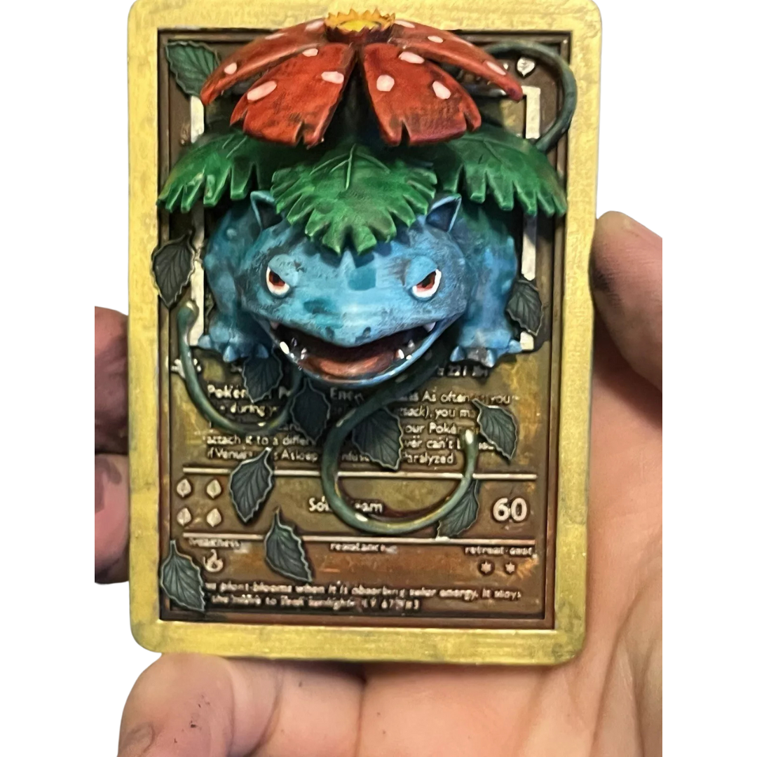 This amazing Pokémon Card 3d print of Venusaur is a must-have for any collector or fan of the Pokémon Trading Card Game. The card is made of high-quality 8k resin and has been beautifully painted, making it a true work of art. With its intricate design and attention to detail, this card is sure to impress. It is part of the Pokémon Card VS set and is perfect for use in battles or as a valuable addition to any collection. Don't miss out on the chance to own this unique and stunning card.
