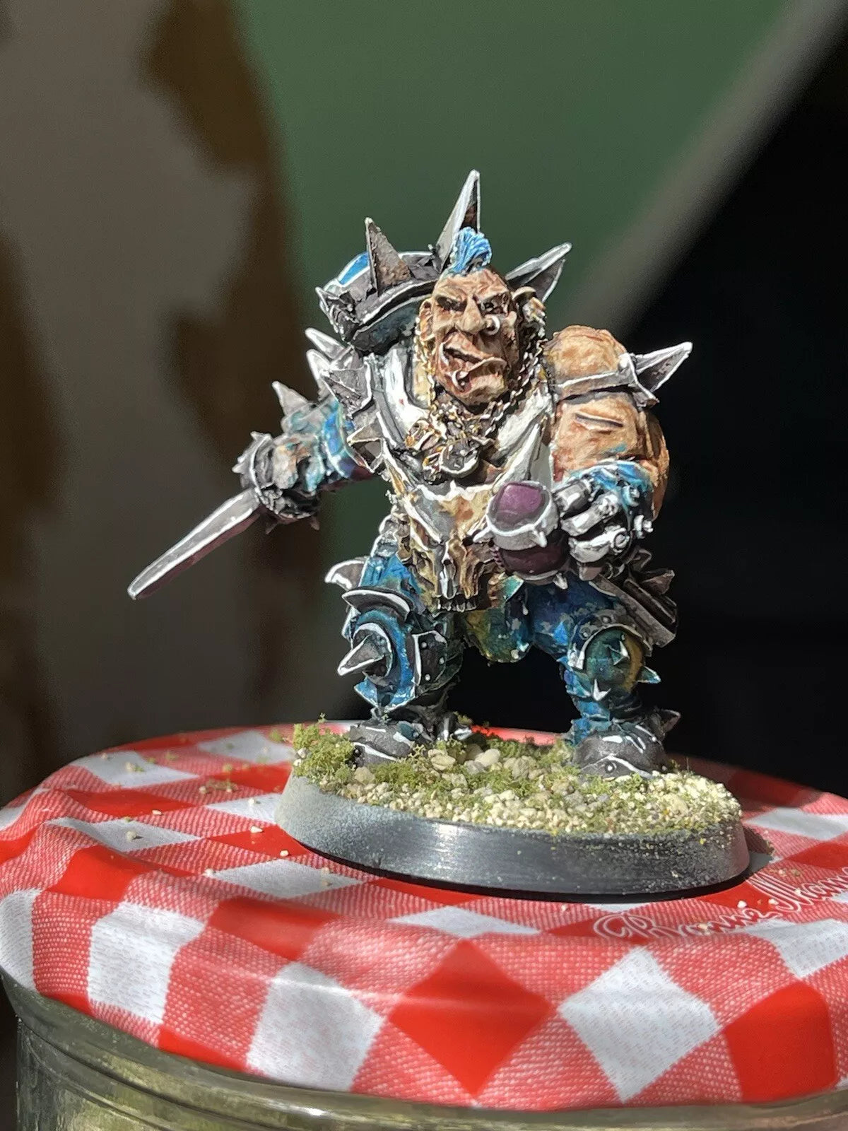 This Warhammer Fantasy Blood Bowl miniature is a fully assembled and painted hero forge world, featuring the characters Morg 'n' Thorg from Games Workshop. The miniature is perfect for collectors and enthusiasts of the Warhammer game, with its intricate details and stunning appearance. The miniature is a single unit, and comes from the United Kingdom. It is a specialist item for the Blood Bowl game, and is sure to impress any fan of the series. This Warhammer Fantasy Blood Bowl miniature is a must-have for any collector or player, and is perfect for adding to your collection today.